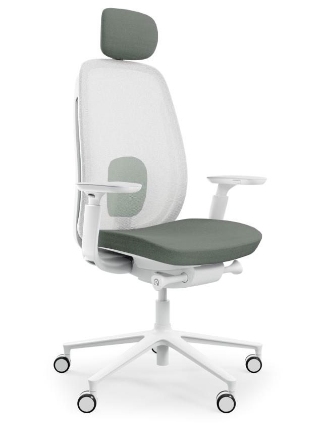 Cиденье и подголовник Cura 68186 (cеро-зеленый), спинка Runner 60061 (белый), твердые колеса для мягкого пола